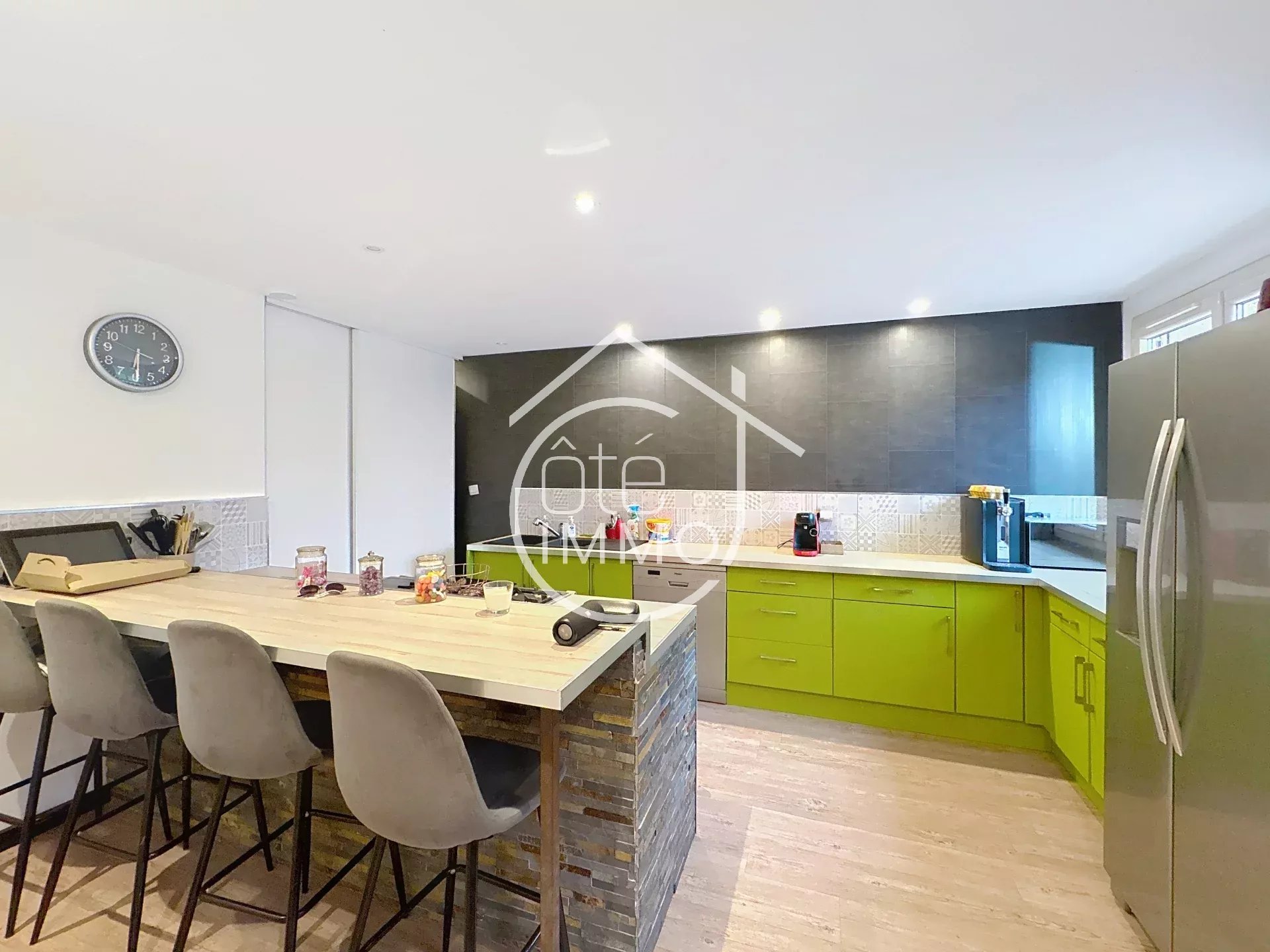 Elle vous séduira dès l’entrée par son vaste séjour lumineux, parfait pour des moments de partage en famille ou entre amis. La cuisine moderne avec îlot central allie style et fonctionnalité, pour cuisiner tout en restant au cœur des échanges.