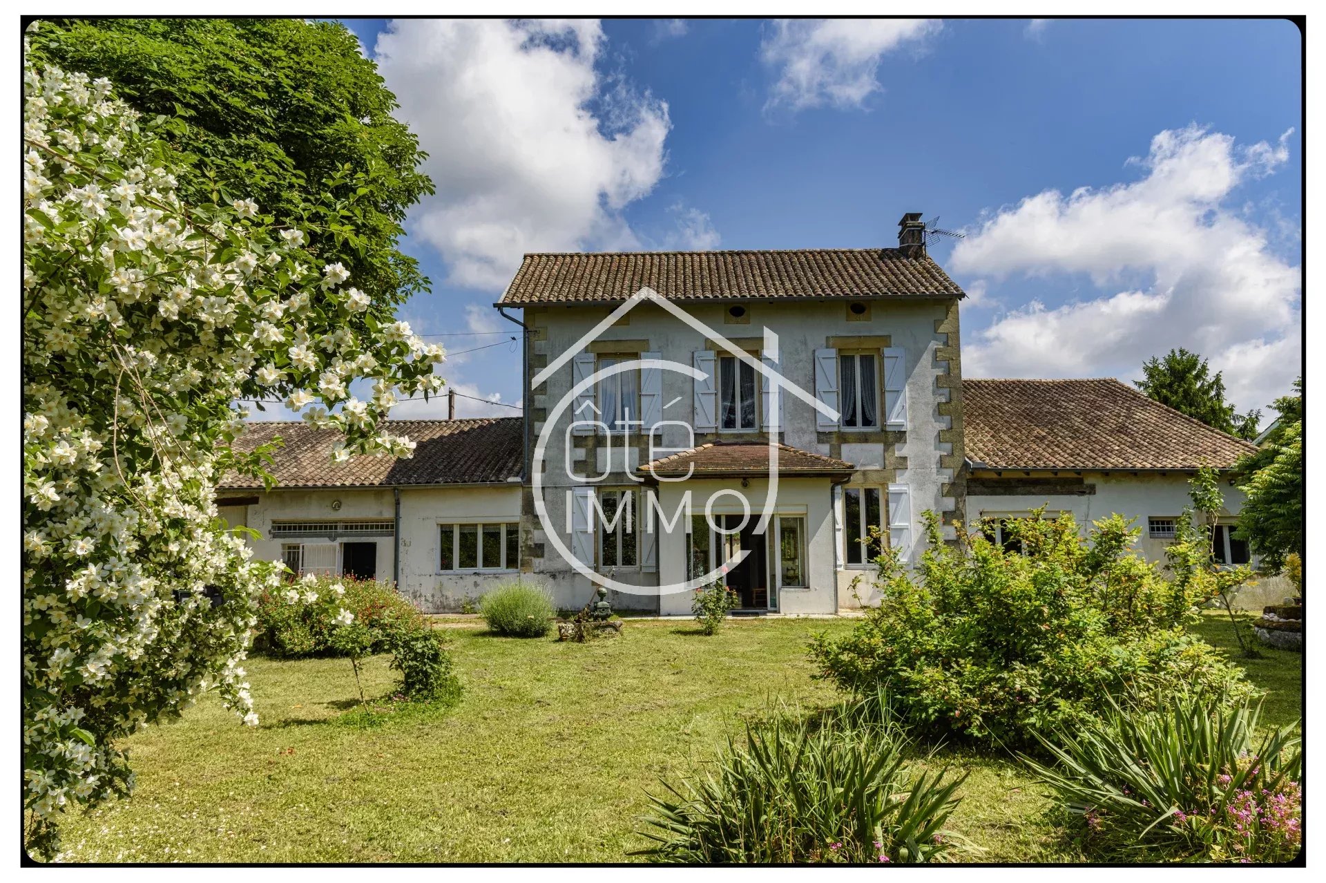 Coté Immo Pays Foyen vous invite à découvrir cette belle maison ancienne pleine de cachet, d’une surface généreuse de 216 m², avec dépendances, garage et grand jardin arboré de plus de 3 200 m².